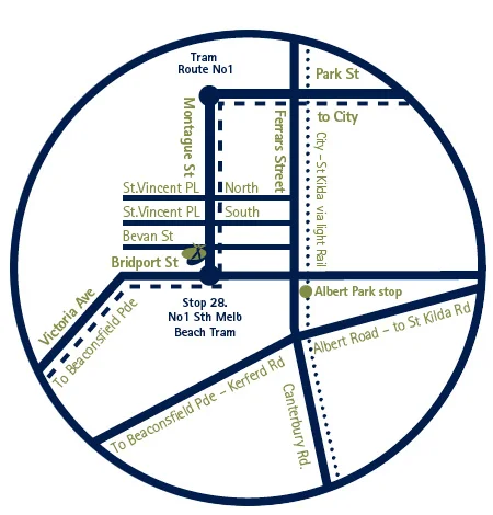 The No.1-South Melbourne Tram stops outside our front door. The No.96 light-rail-tram is a 5 minute walk away.